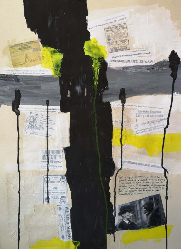 Ausencia. 18 x 24 cmLa Peste. 50 x 70 cmLa Peste II. 50 x 75 cmLa Peste III. 51 x 72 cmBrexit. 50 x 70 cmEl muro. 50 x 70 cmBlack breath, a poem for George Floyd. 50 x 70 cmIncendio. 50 x 70 cmGuerra. 45 x 56 cmTriptico: Anunciación de los nuevos tiempos. Exterior.Triptico: Anunciación de los nuevos tiempos. Interior. 31 x 70 cmTriptico: Anunciación de los nuevos tiempos. Tabla central.